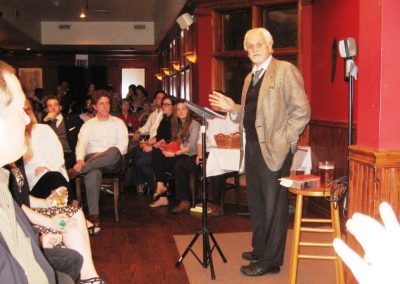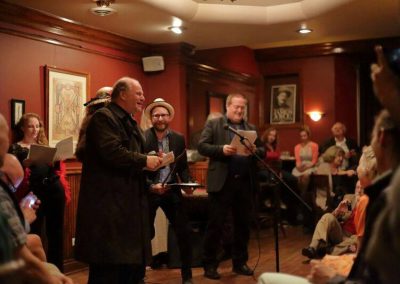 On the 100th Anniversary of Bloom’s Day, Collage Productions presented readings from James Joyce’s “Ulysses” at Chicago’s Red Line Pub on June 16th 2004. In addition to readings by members of the cast of ” The Man Who Came To Dinner”, an open mic with audience members was conducted. Music was supplied by Collage Production member Vince Rock. The event was co-sponsored by “Puddin Head Books”.